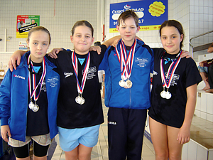 Pohár ČR 10-letého žactvaPlzeň - 10.-11.12.2011Plavecké závody Zimní Pohár ČR desetiletého žactva se uskutečnil ve dnech 10. a 11.prosince v Plzni. Mezi nejúspěšnější plavce ČR se probojovalo kvarteto žateckých plavkyň z oddílu SK Jazzmani Žatec ve složení: Ella Pohoriljak, Radana Halvátová, Barbora Ševčíková a Veronika Seifertová. Nejlépe se dařilo Elle Pohoriljak, která získala 2 zlaté medaile v závodech na 100m znak a 200m volný způsob. Ke zlatým medailím dokázala přidat ještě dvě bronzové medaile ze závodů na 100m volným způsobem a 200m polohový závod. "Nejhorší" umístění Elly ze šesti stratů byla dvě čtvrtá místa na 50m volným způsonbem a 50m motýlek. Vynikající výkon. Z ostatních výkonů potěšilo 9.místo na 100m prsa u Barbory Ševčíkové, dvě sedmá místa na 200m polohový závod a 50m motýlkem, dvě osmá místa na 100m motýlkem a 200m volným způsobem u Veroniky Seifertové a též 8. a 9.místo u Radany Halvátové v závodě na 200 a 100m polohový závod. Dalším medailovým úspěchem mladých plavkyň se stal závod štafet, kde nejprve štafeta děvčat ve složení Ella Pohoriljak, Barbora Ševčíková, Veronika Seifertová a Radana Halvátová získala ve štafetěna 4x50m polohový závod stříbrné medaile. Zlato získala štafeta SK Policie Nymburk a bronzové medaile pak štafeta PK Slávia Plzeň. Další stříbrnou medaili získali naše děvčata v závodě štafet na 4x50m volným způsobem. Zlato získala opět štafeta SK Policie Nymburk, bronzové medaile pak SPK Liberec. Na zimním poháru ČR desetiletých plavců získali žatečtí plavci celkem 2 zlaté, 2 stříbrné a 2 bronzové medaile. Všem děvčatům za jejich výkony gratulujeme. Výsledky