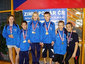 Pohár ČR 10-letého žactvaBeroun - 5.-6.12.2009O víkendu 5.-6. prosince 2009 se desetiletí plavci SK Jazzmani Žatec zúčastnili Poháru České republiky, což je v této věkovou kategorii neoficiální Mistrovství Čech. Našich 6 plavců – Jakub Dvořák, Dominik Červenka, Tomáš Urban, Martin Filek, Bára Červenková a Pavla Barochová odjeli spolu s trenérem Martinem Dvořákem do Berouna, kde dokázali v těžké konkurenci vybojovat 11 medailí. Nejúspěšnějším závodníkem se stal všestranný Jakub Dvořák, který získal dvě zlaté medaile na trati 100m znak a 200m polohový závod. Dále ještě vybojoval tři stříbrné medaile, a to v disciplínách 50m a 100m volným způsobem a 100m polohový závod. V jeho šesté disciplíně skončil na neoblíbeném 4.místě se ztrátou pouhých 4 desetin sekundy za bronzovou příčkou. Dalším úspěšným závodníkem byl také Dominik Červenka, který na trati 50m a 100m prsa nedal svým soupeřům šanci a s přehledem v obou disciplínách získal zlatou medaili. Dařilo se mu také na trati 400m a 200 m volným způsobem, kde se umístil na 4.místě a 7.místě. Pavla Barochová potvrdila, že patří mezi nejlepší závodnice v prsařských disciplínách, na 100m trati vybojovala zlatou medaili, na trati poloviční se umístila na výborném 2.místě. V ostatních disciplínách skončila vždy v první desítce závodnic. Tomáš Urban se sice na stupni vítězů neumístil, ale dokázal si výrazně zlepšit všechny svoje osobní maxima. Nejvíce se mu dařilo na motýlkářských tratích, kde na 50m trati skončil na výborném 6.místě a na 100m trati na 9. místě. Bára Červenková startovala ve čtyřech disciplínách, kde se také zlepšila své osobní rekordy, na trati 400m volným způsobem dokonce až o 17 vteřin, avšak v silné konkurenci to na medailové umístění nestačilo. Chlapci ve složení – J.Dvořák, D.Červenka, T.Urban a M.Filek – si také doplavali pro zlatou medaili ve štafetě 4x50m polohový závod. V druhé štafetě 4x50m volným způsobem si plavci ve stejném složení po dramatickém závěru vybojovali výborné druhé místo. Martin Filek startoval na závodech takové kvality vůbec poprvé a předvedl skvělé výkony, kterými potvrdil, že se mezi zkušenými plavci v budoucnu určitě neztratí. Naši plavci v Berouně předvedli skvělé výkony, přivezli celkem 11 medailí – 6 zlatých a 5 stříbrných, čímž se stali nejúspěšnějším plaveckým klubem ze všech 46 zúčastněných oddílů!!! Autor: Lenka a Martin Dvořákovi Výsledky